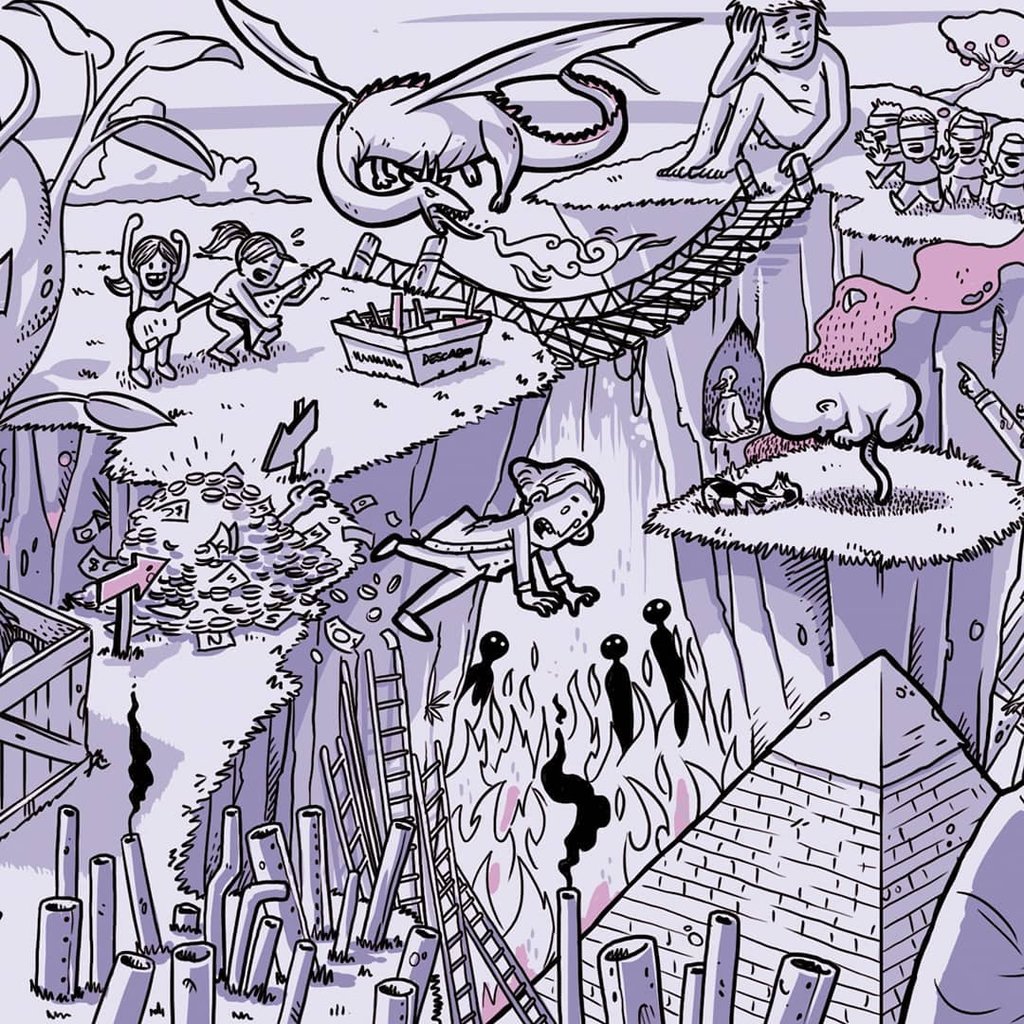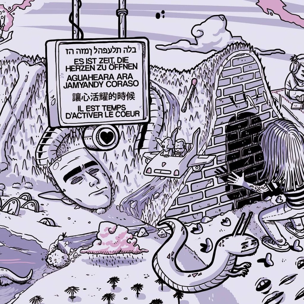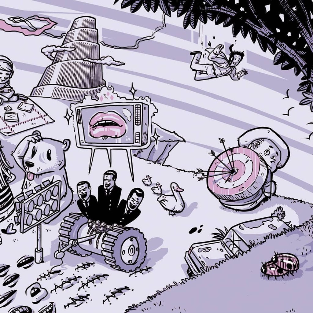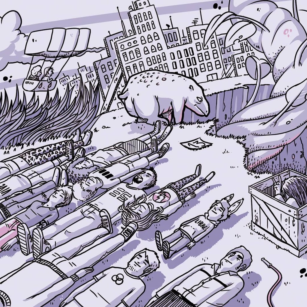 Para hacer la ilustración les pregunté muchas cosas, escuché el disco y leí las letras. Me divertí mucho creando y estuvo muy bueno compartir con ellxs esos días entre ensayos, charlas con asado y mucha Córdoba.