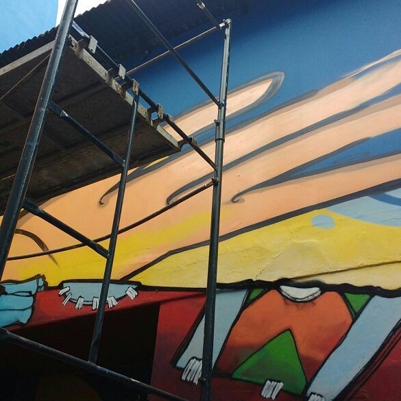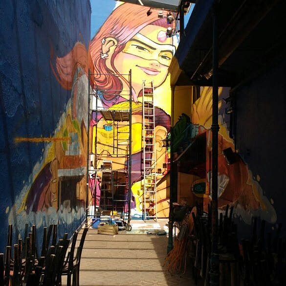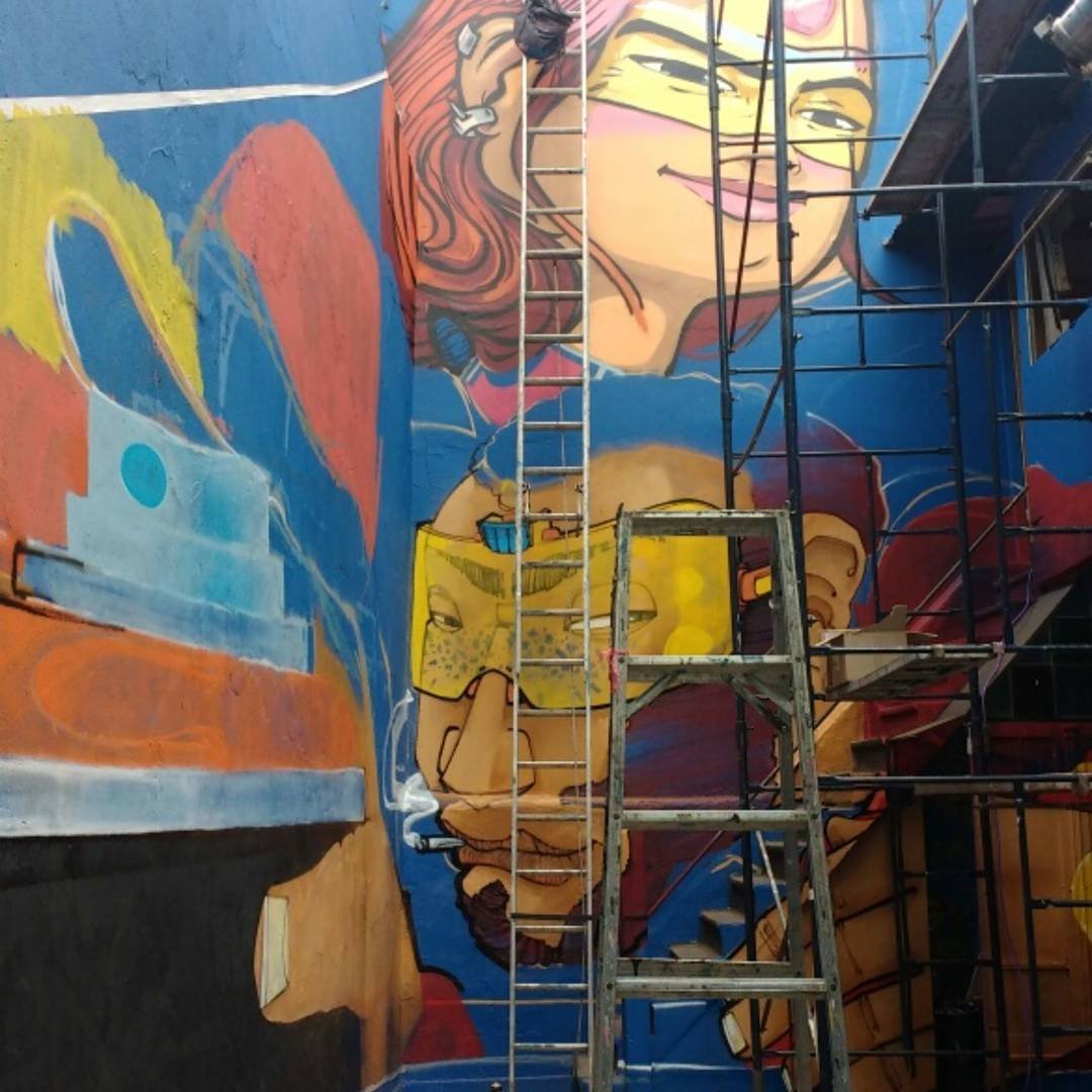 Los coordinadores del Centro Cultural nos invitaron a Saile (Chile) y a mí a realizar una intervención conjunta en el patio de este espacio.