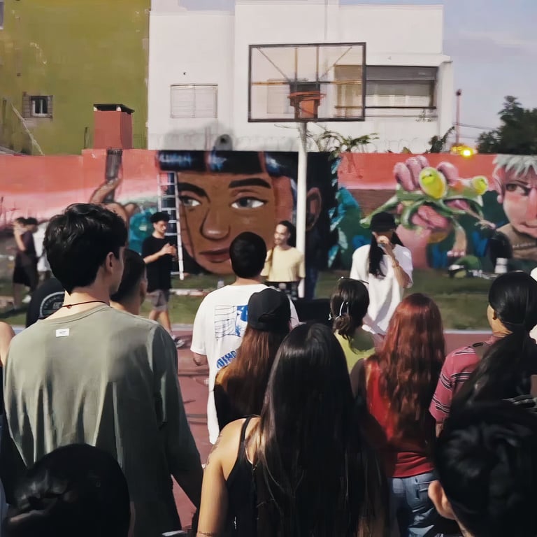 Throughout those days, a large wall in Plaza Rebecq was intervened, and on Sunday, in addition to that action, there were live shows by hip hop and urban music artists. There were also activities for anyone interested in experiencing spray painting and trying out the techniques used in this style of interventions.