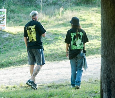 These t-shirts are screen-printed in two inks on a 100% cotton t-shirt with great attention to the details of clothing.